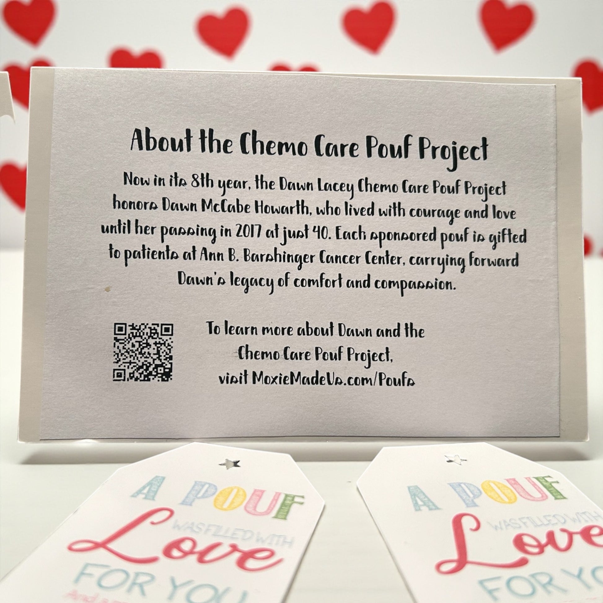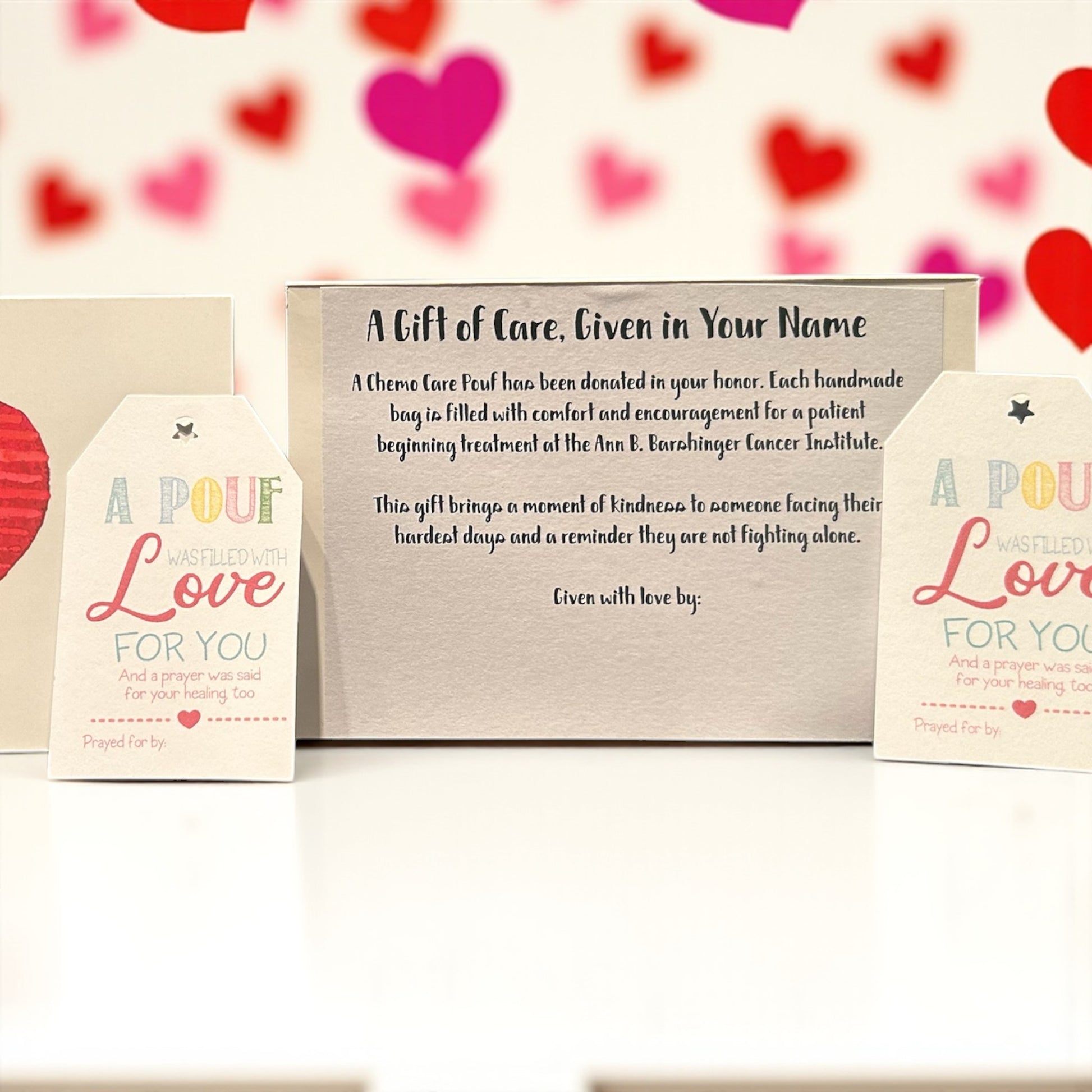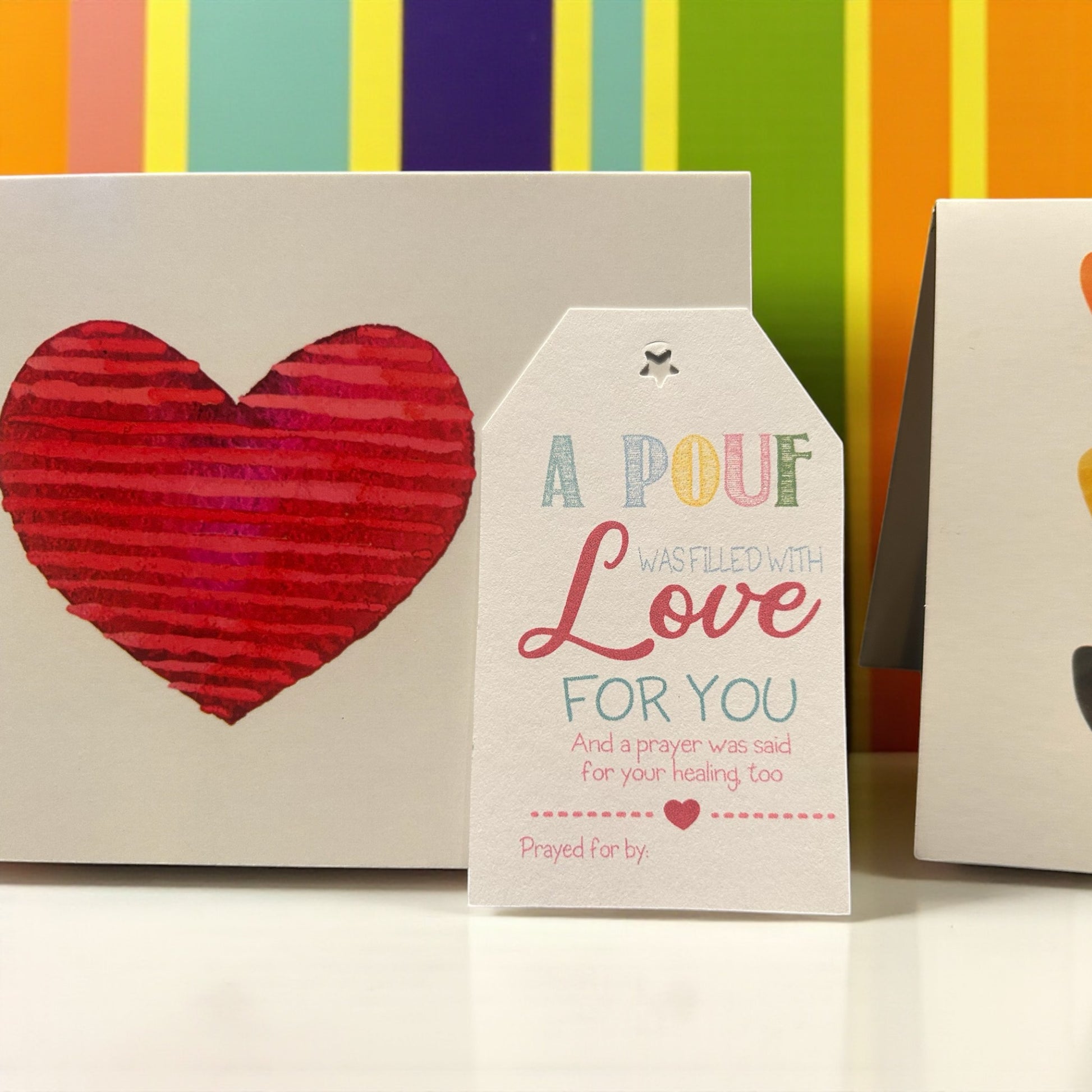 You’ll also receive a card to gift (or mail) to someone special, letting them know a Pouf of Love was donated in their name. It’s two gifts in one—spreading love forward and reminding someone they’re never alone.